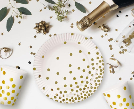 Popierinės lėkštės "baltos su auksiniais taškeliais", 18 cm, 6 vnt