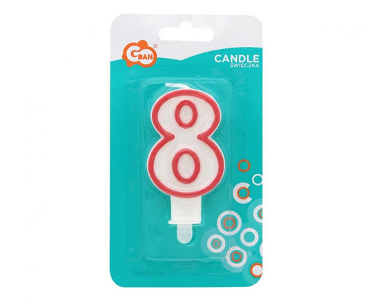 Žvakutė skaičius "8" raudonas kontūras, 7 cm