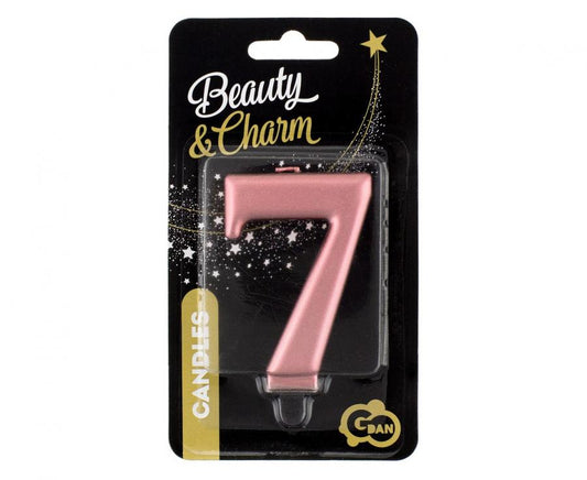 Žvakutė skaičius "7"(rausvai auksinė metalinė, 8,0 cm)