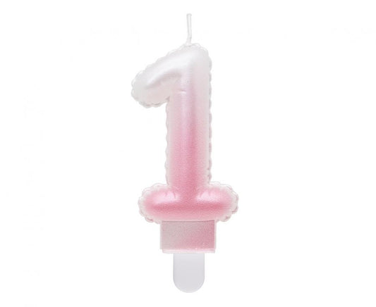 Žvakutės skaičiai (ombre rožinės su baltu perlamutrinės) skaičiai nuo 0 iki 9