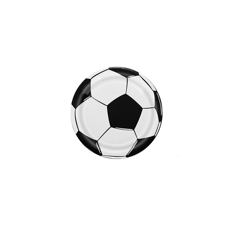 Popierinės lėkštutės su futbolo kamuolio spauda papuoš jūsų šventės stalą.